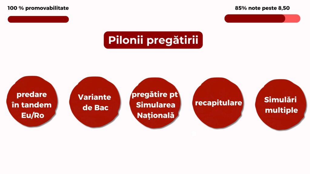 Pregătirea este adresată celor care sunt cu adevărat hotărâți să ia Bacul cu brio. Aici punem accent pe învățare eficientă și consecvență. Dacă vii doar să stai pe margine, energia ta nu se potrivește cu a noastră. Fii conștient că implicarea ta directă e obligatorie.